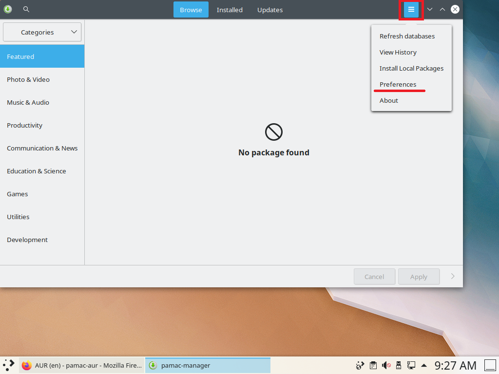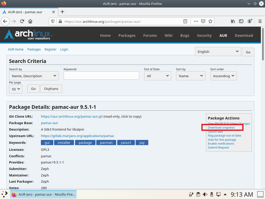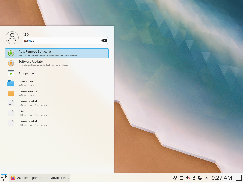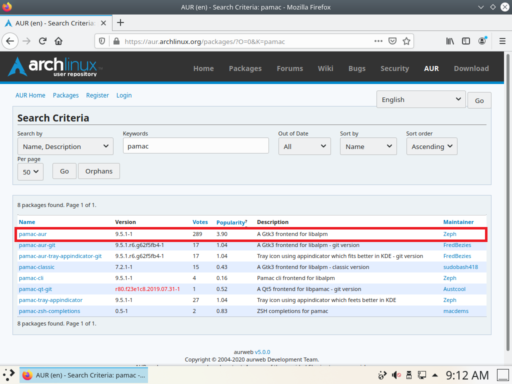 pamac 은 매우 직관적인 패키지 관리자입니다. AUR 을 검색하기에도 쉽고