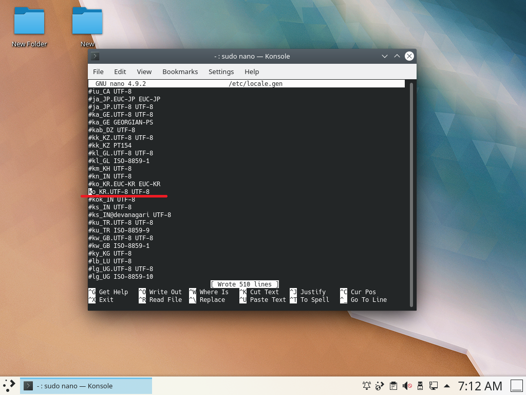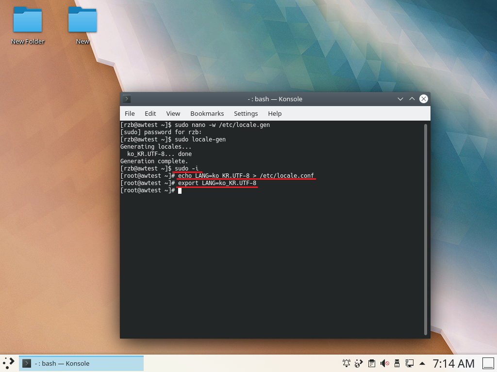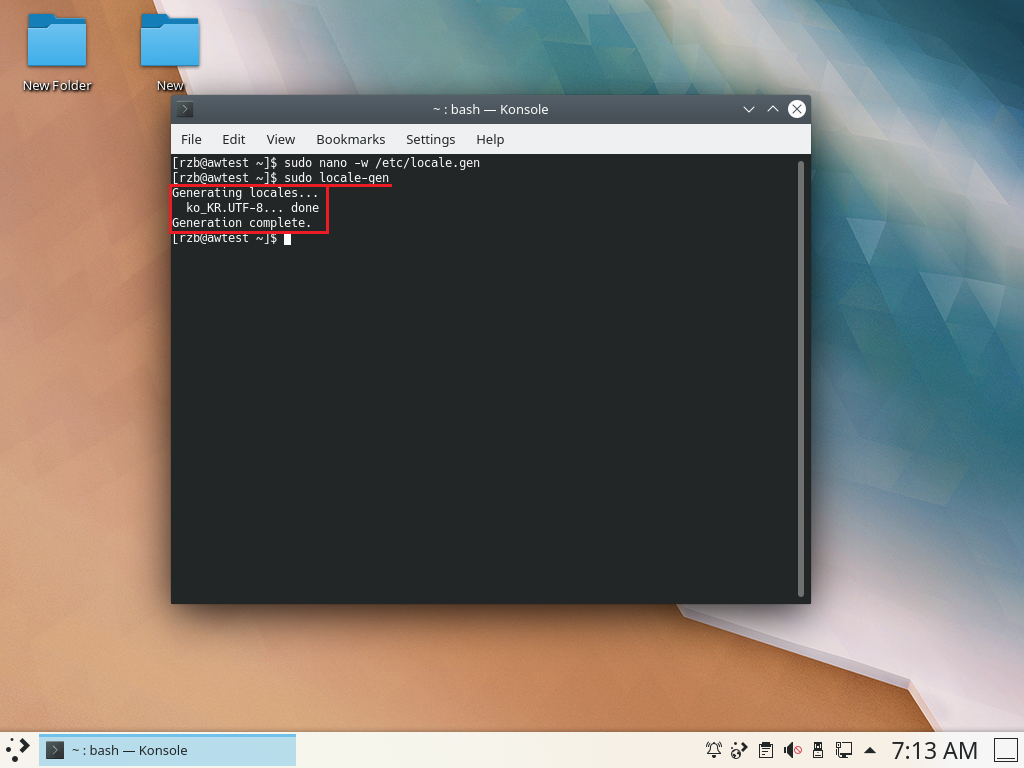설치 가이드에서 보았던 것 처럼 다시 " sudo locale-gen " 을 입력해서 새로 생성해 줍니다.