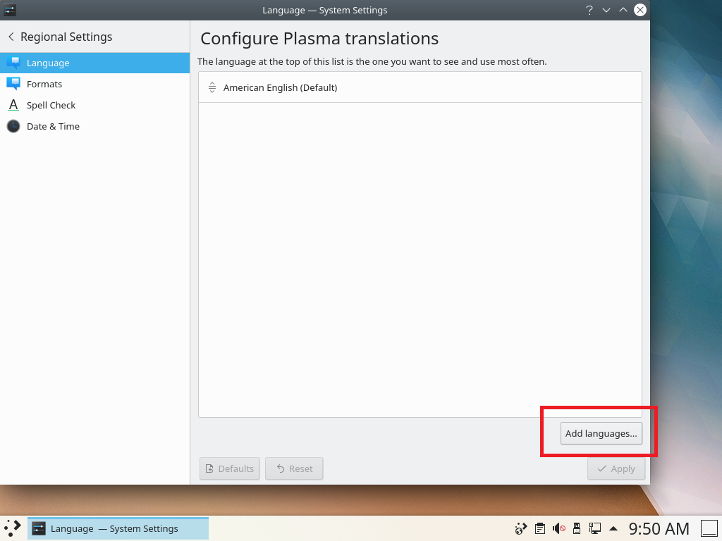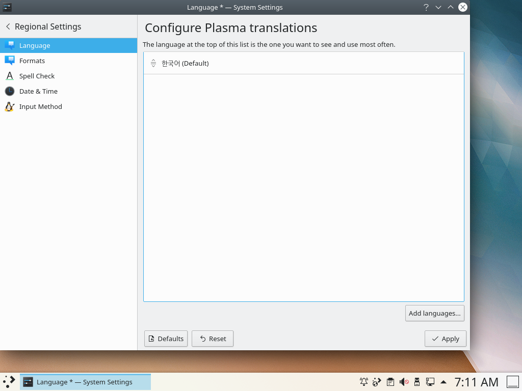 이제 이용할 수 있는 한글 폰트가 설치되었습니다. 영어로 되어있는 KDE 의 환경을 한글로 모두 바꿔줄 차례입니다.