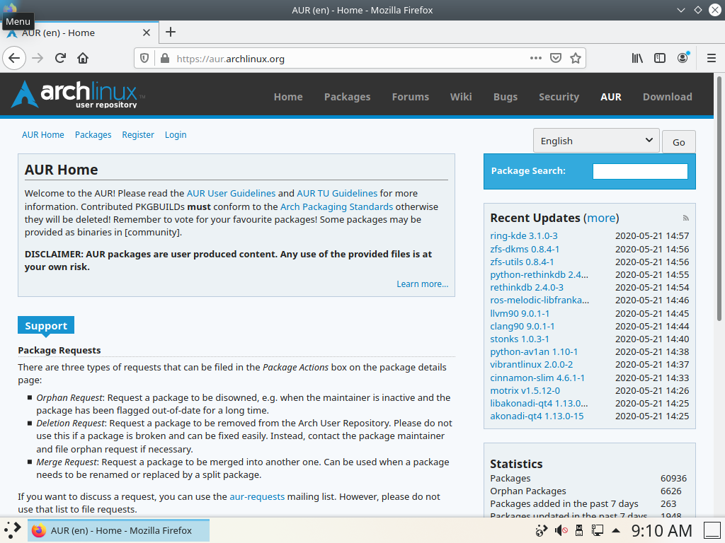 firefox 를 실행하여 아치 리눅스 유저 저장소로 이동합니다.