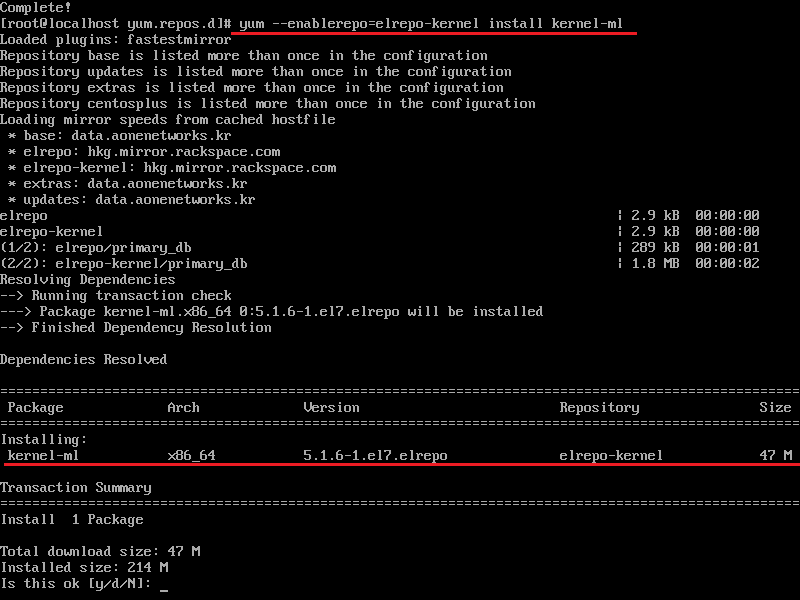 // 이번 스텝에서는 elrepo 저장소에 있는 최신 버전 5.1.6 커널을 설치하게 됩니다.