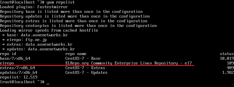 확인이 되었다면, 정상적으로 elrepo 저장소가 추가된 겁니다.