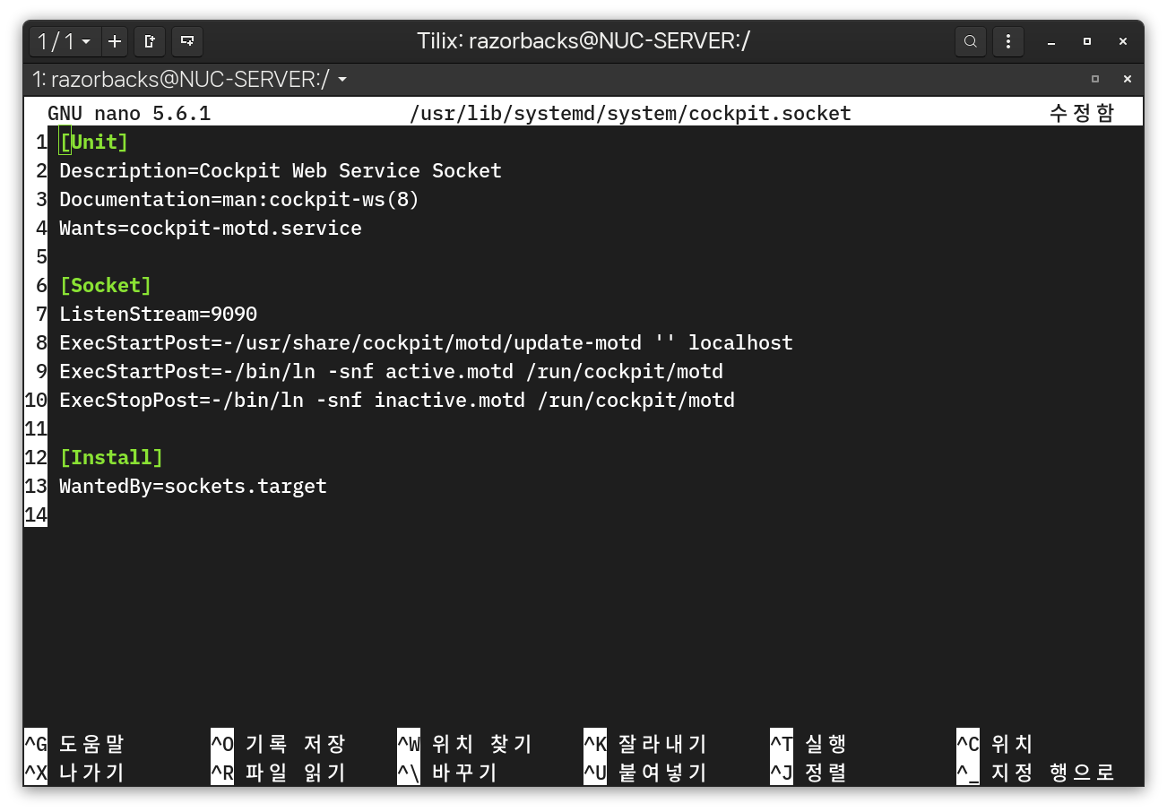 cockpit.socket 내용중, ListenStream=9090 포트를 대체하고자 하는 포트로 변경합니다.