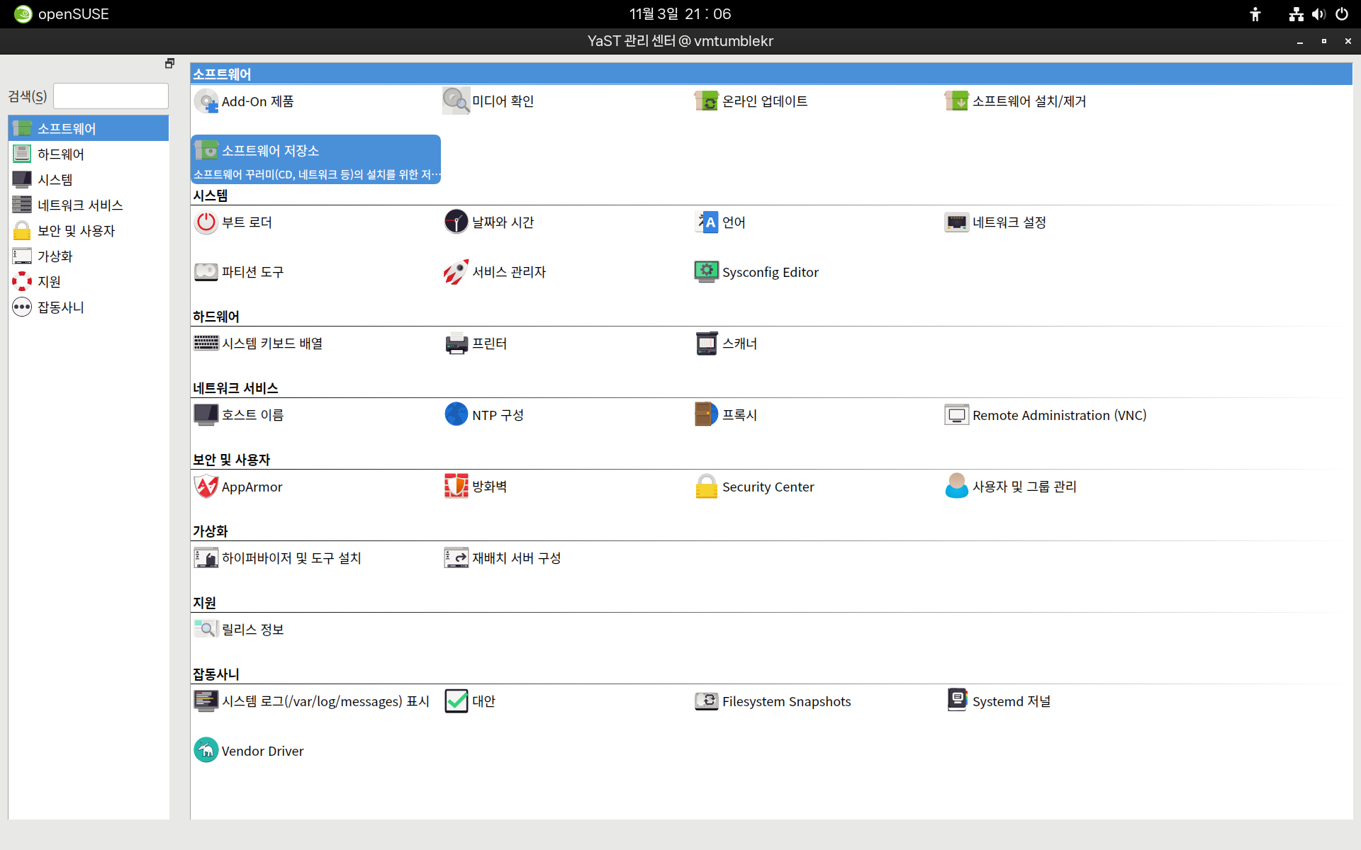 2. YaST 에서 "소프트웨어 저장소" 를 실행합니다.