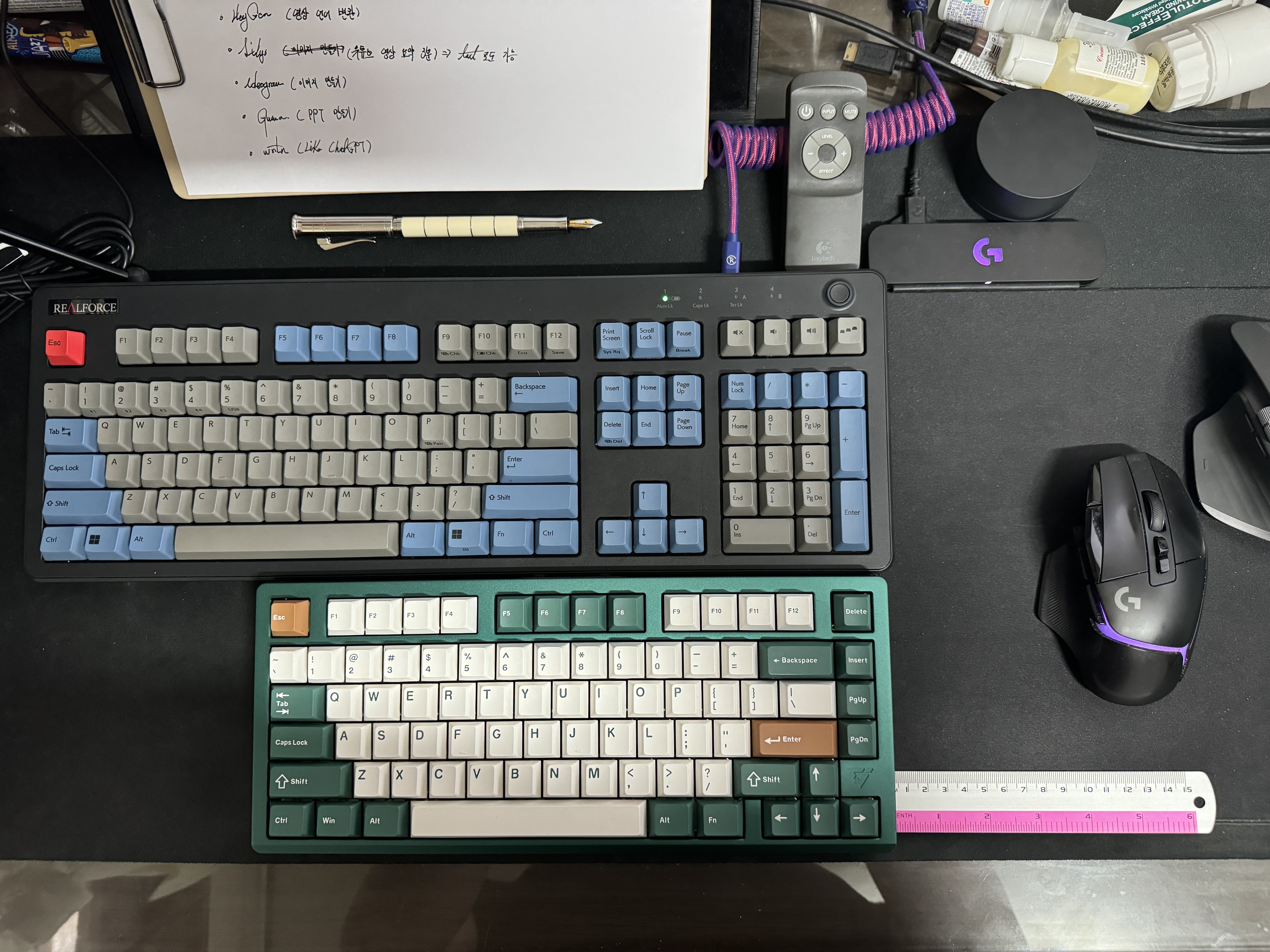지금은 다시 깊은 고민에 빠졌습니다. 풀사이즈 키보드를 사용하기에는 Powerplay와 G502X 를 빼거나, 풀사이즈 키보드를 안쓰거나 해야 할 것 같습니다.