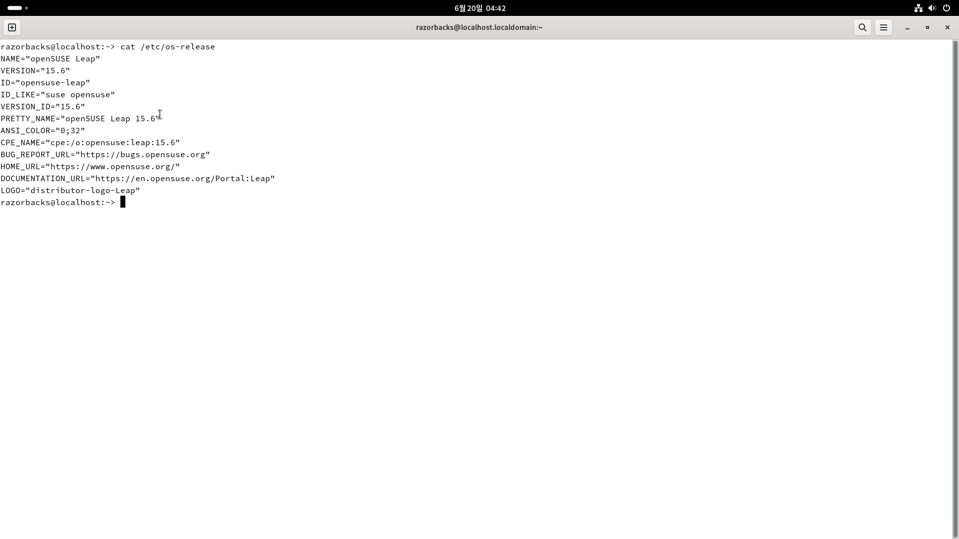 부팅 완료 후에 os-release 를 확인하면 15.6 버전으로 표시되는 것을 확인할 수 있습니다.