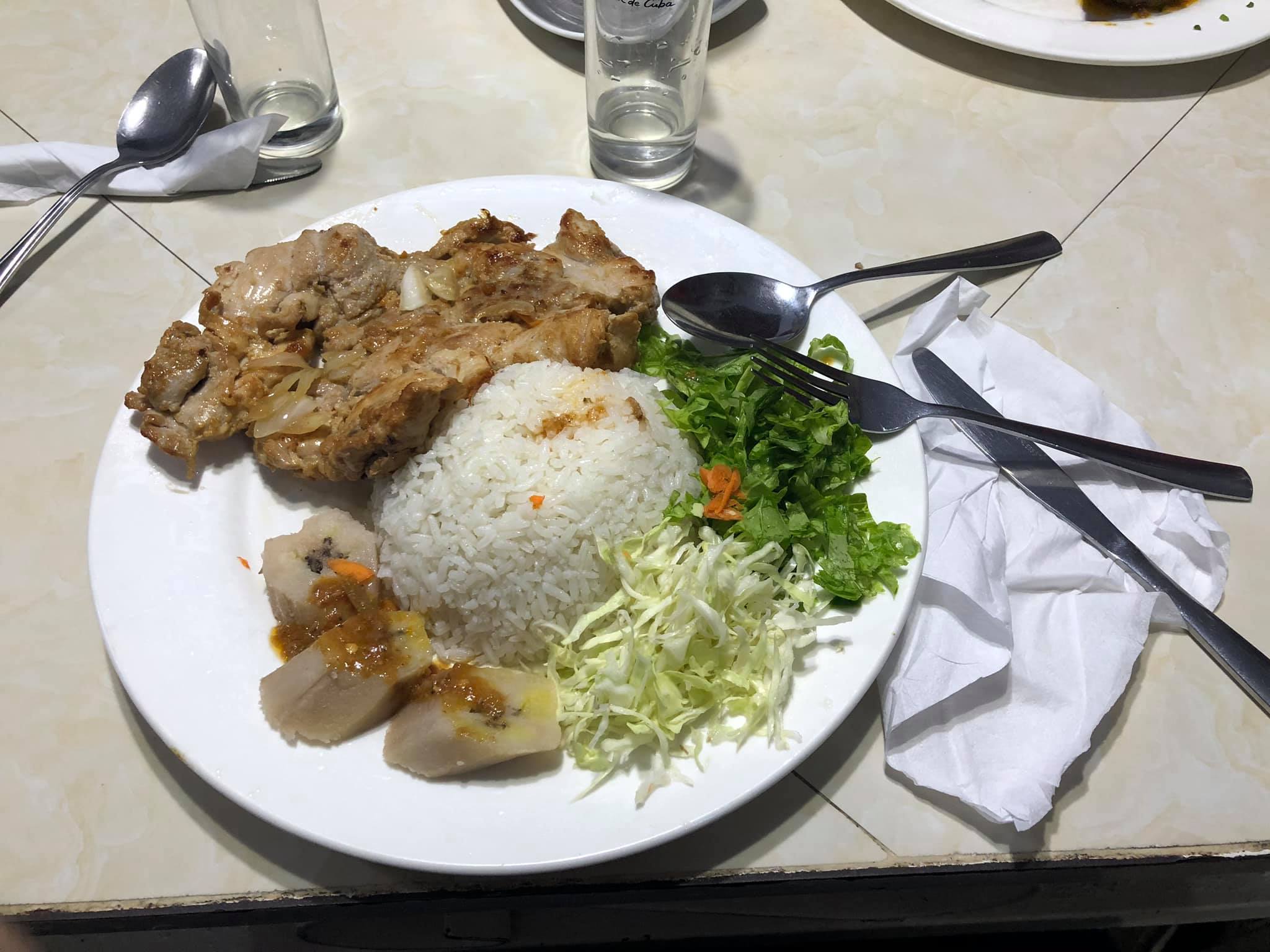 쿠바에서 먹은 최초의 제대로된 식사다. 첫날에는 길거리 햄버거와 길거리 피자, 후고(주스), 플라자 호텔 코-카콜라를 먹으며 다녔다.