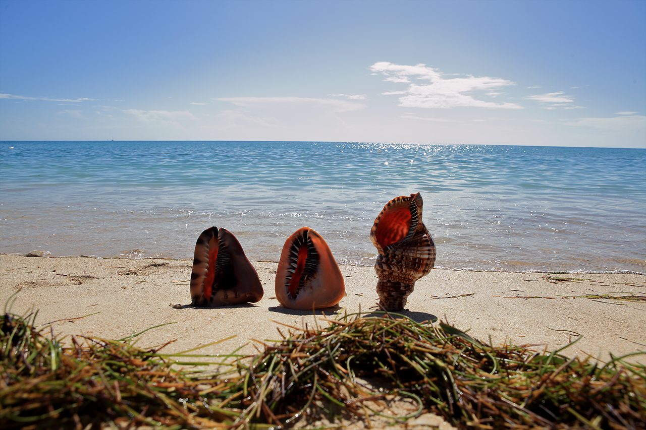 백사장에 사람이 별로 없는데, 조개? 소라? 껍데기가 해변에 있길래, 연출된(?) 사진을 찍으려고 껍데기를 세워두고 있었는데, 쿠바 사람들이 와서 도와주겠다며 카메라 가지고 가 있으라고 했다.