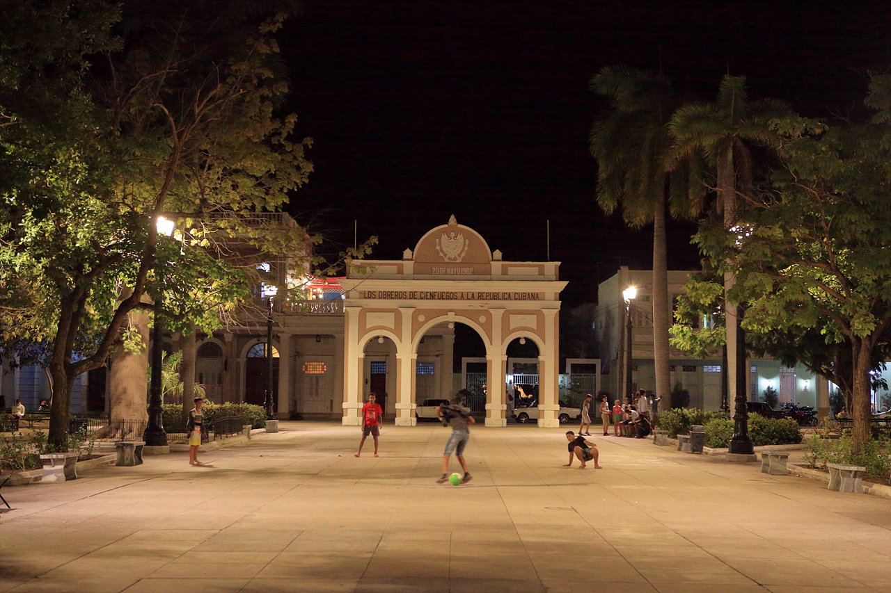 시엔푸에고스 광장에는 아이들이 밤에 나와서 논다.