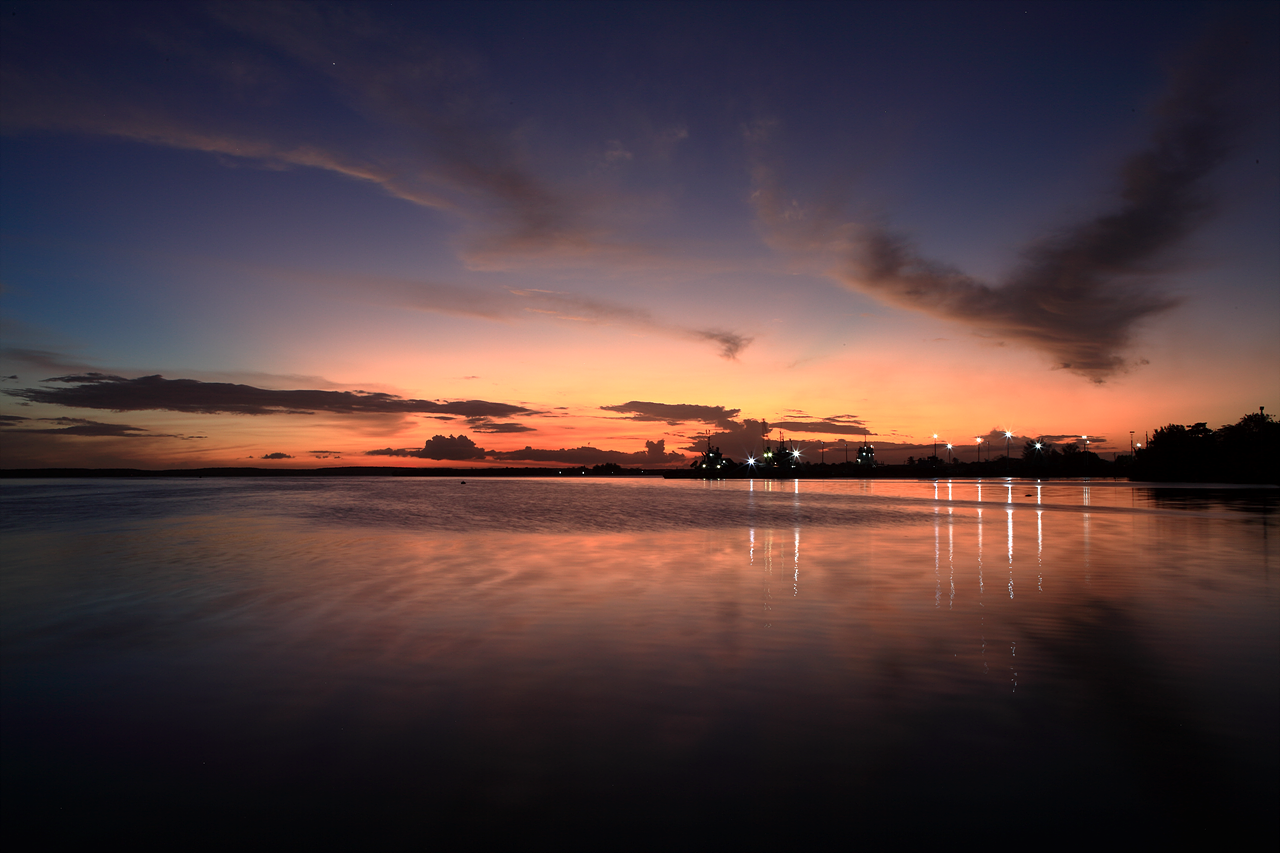 해가 지기 직전에 빨갛게 물들어버린 곳과 파란 하늘의 경계가 절묘하게 나눠지는 지점.