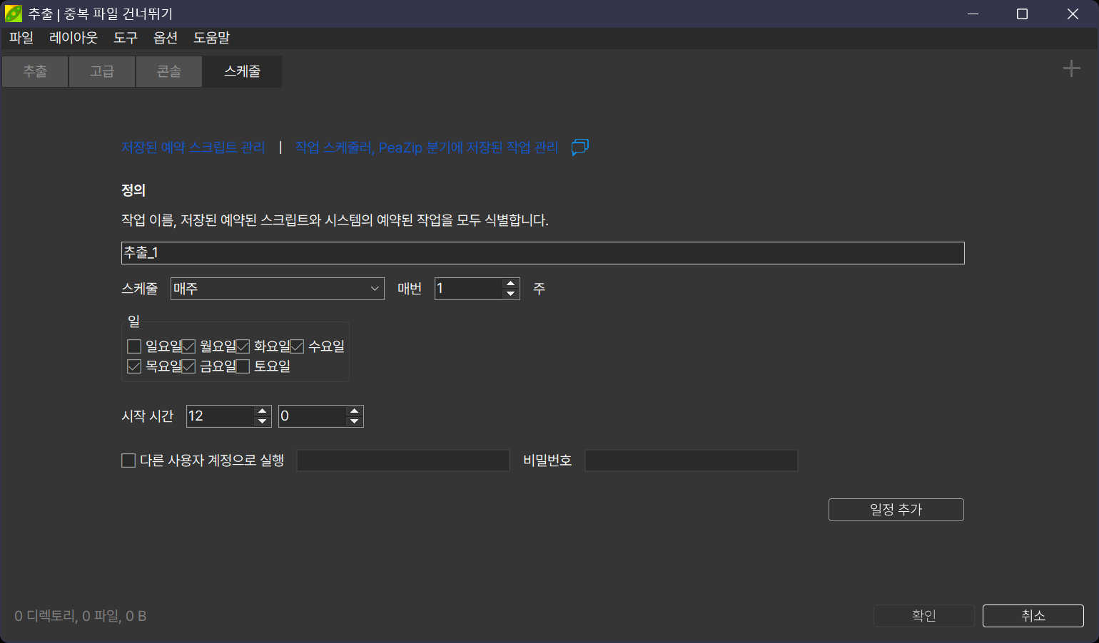 peazip은 스크립트 기능도 지원합니다. 전문가를 위해 더욱 더 쉽고 빠르고 편하게 이용할 수 있는 여러가지 기능을 제공합니다.