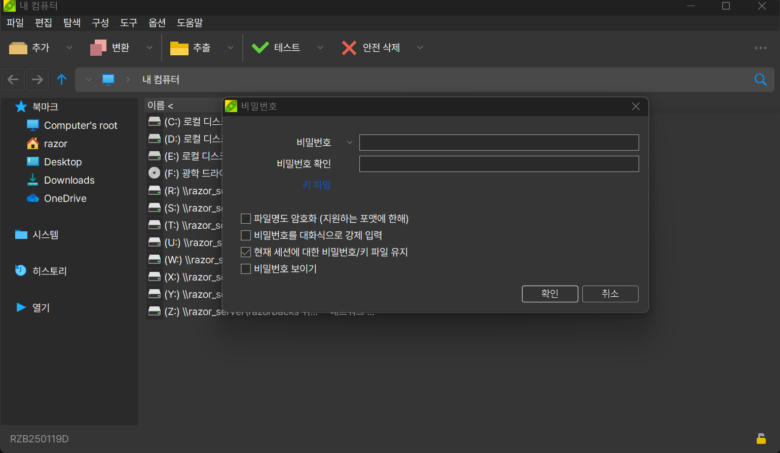 반디집 무료 에디션의 경우에는 최대 1개의 비밀번호만 저장할 수 있습니다.