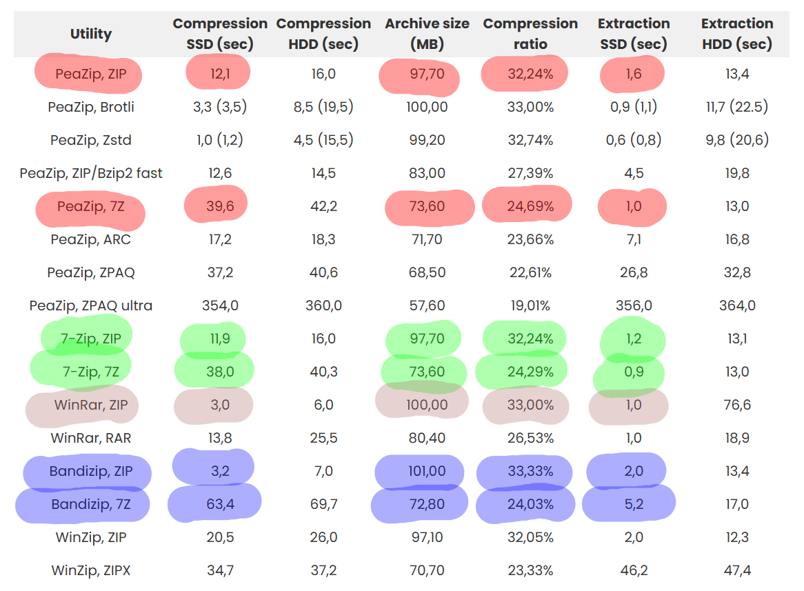 peazip 에서 진행한 벤치마크 테스트를 확인해보죠!