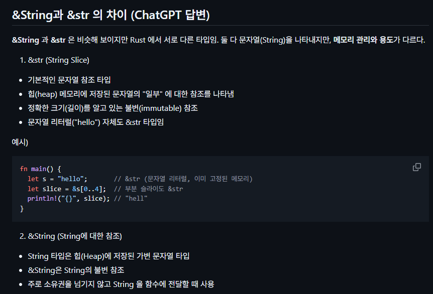 Rust는 국내에 물어볼 곳이 많지 않을 수도 있기 때문에 영어로 검색해서 도움을 받고, 그게 어렵다면 ChatGPT를 통해 도움을 받으면서 공부하면 됩니다.